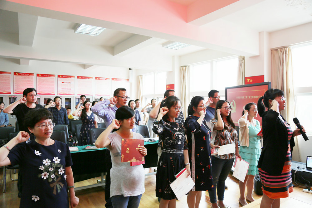 活动最后,胥辉同志为全体过生日的党员赠送“政治生日纪念卡”和《习近平七年知青岁月》,姜丽红同志领誓,全体党员重温入党誓词。