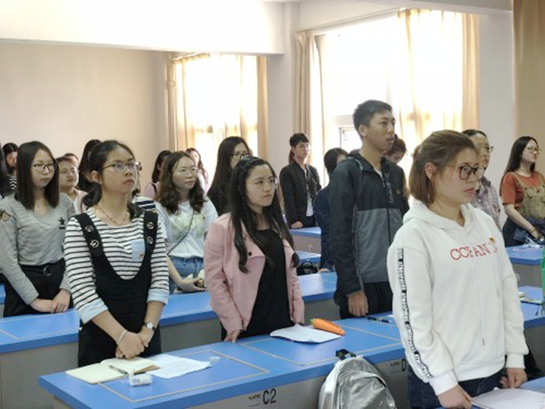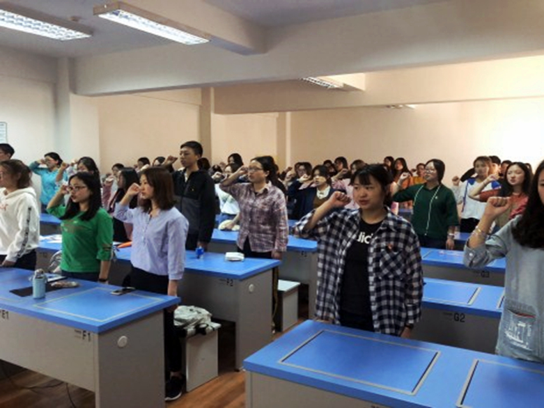 2018年5月4日下午三点,2016级商务英语团支部和2016级英语第二团支部在三教607共同度过五四青年节,在支部书记的带领下开展了以 “重温团史、重温誓词、坚定信念跟党走”为主题的团日活动。