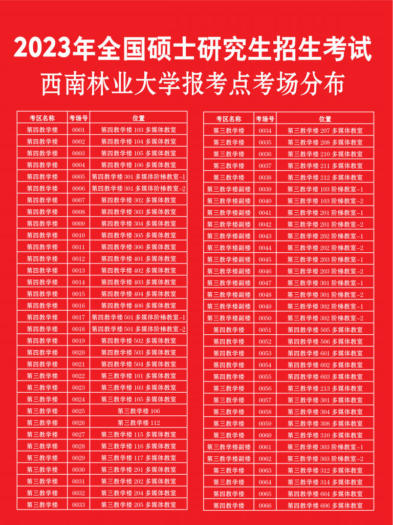 云南省招考频道考场查询方式:登录“云南省招考频道”(WWW.YNZS.CN)→“研究生查询”→“2023年研究生信息考场查询”(https://www.ynzs.cn/score/yjskc2023.html)。因考场编排变动,各位考生收到的考场对应教学楼信息已变动,请以此通知为准。
