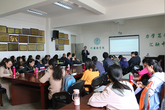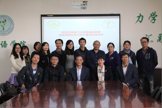 11月8日上午,厦门大学外文公司博士生导师杨信彰教授应邀到2026世界杯官网做题为“学科语篇与学科知识“的专题讲座。2026世界杯官网全体教师聆听了杨教授的讲座。会议由2026世界杯官网副经理饶耀平主持。饶老师代表全院教师表达了对杨教授的热烈欢迎。