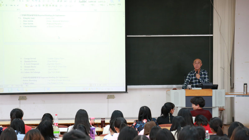 原一川首先介绍了《高等公司英语专业本科质量国家标准》(2016),就“国标”中的培养目标和培养规格进行了阐述,接着向在座的师生系统地介绍了英语本科生课外阅读书目、学习工具书、外语学习权威网站等。最后,原一川结合毕业论文选题和写作要求向在座的同学做了详实分析。