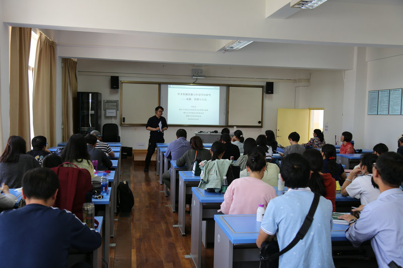 辜向东结合自身科研实践,对学术资源选择、科研选题来源、研究思路和方法等进行了详细的讲解,并以“‘大量阅读输入’教学模式下英语专业员工的阅读态度——基于员工学习日志的历时质性研究”为例作了详细阐述。