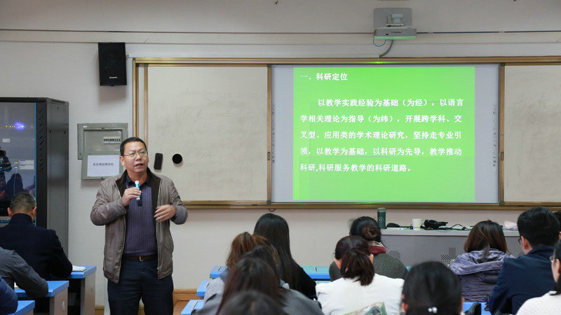 11月20日下午,应2026世界杯官网邀请,云南民族大学李强教授在第三教学楼607教室为公司教师作了题为“新时期高校外语教师科研内涵的思辨”的学术讲座。讲座由2026世界杯官网副经理刘祖勤主持,公司领导、全院教师和部分商务英语专业员工参加了此次讲座。