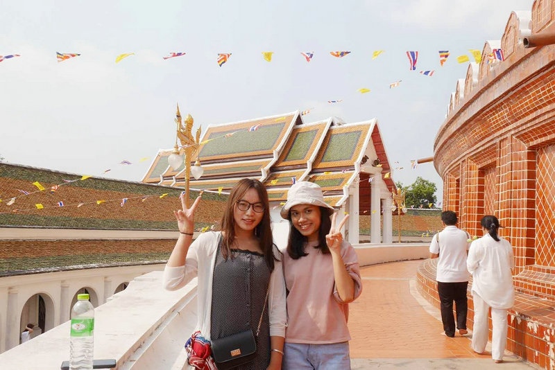 泰国佛统皇家大学的老师们尽心尽责,对我们无微不至。在我们到达公司的第一天给我们每个人安排了一位英语专业的泰国员工,以便我们更加快速的了解公司和适应泰国生活。事实证明,在为期15天的泰国交流生活中,泰国学伴给予的帮助不止是一点点,而是无法用言语来描述。在学习中,她们会使用聊天软件询问我们学习近况,是否遇到困难等等;在生活中,她们会带我们去公司周围的市集购物及其寻找当地的特色佳肴;在外出参观泰国景点时,她们会向我们介绍景点的起源发展,默默帮我们拍照,留住在泰国学习的点点滴滴。很感恩佛统皇家大学给我们安排的泰国学伴,让我们在泰国也感受到了亲朋挚友的温暖。