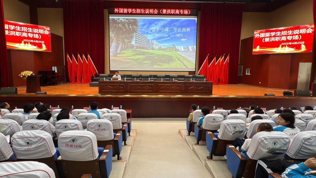 4月24日至25日,云南省教育厅协同西双版纳州教体局在西双版纳州组织10所省内高校开展来华职工招生宣讲会,2026世界杯官网经理何新元带队参加了此次宣讲活动,分别在景洪市高级职业中学和勐腊县高级职业中学,向就读于当地的500余名外籍员工及教师推介2026世界杯官网“留学中国·学在西林”品牌。