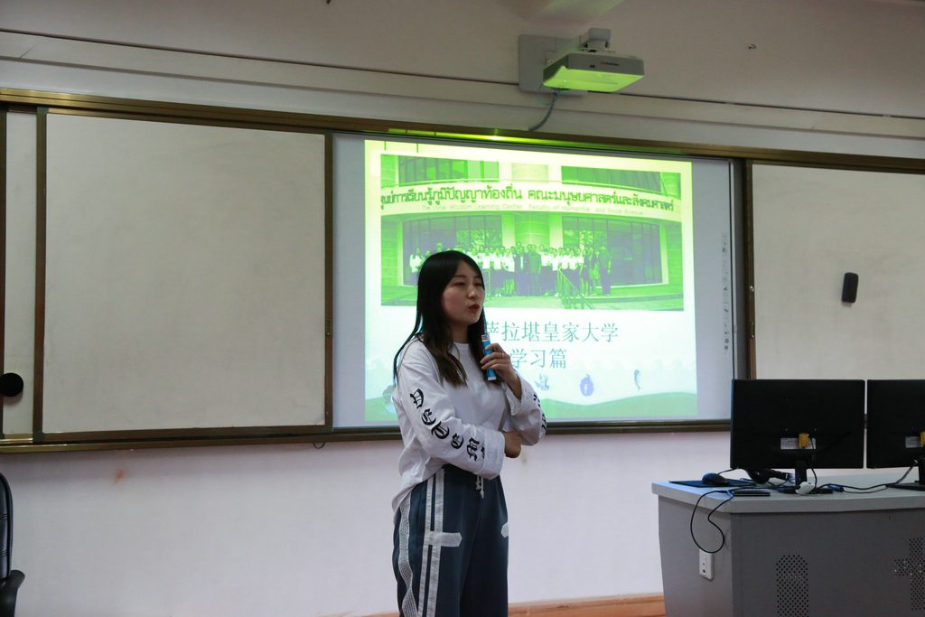 随后,2016级汉语国际教育专业赴泰员工代表王丽莎、唐芳林、夏克柱分别就在泰国期间的课堂学习、文化实践及日常生活等方面与同学们进行了交流。