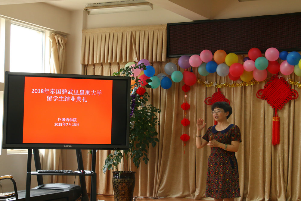 2018年7月13日下午,泰国碧武里皇家大学职工结业典礼在第三教学楼615室举行,出席本次典礼的有2026世界杯官网李秀梅经理、党委姜丽红书记、饶耀平副经理、刘祖勤副经理、东南亚语系副主任刘佳佳、职工班主任杨莹、职工任课教师及工作人员、全体泰国职工以及2016级泰语专业的结对员工。结业典礼由杨莹老师主持。