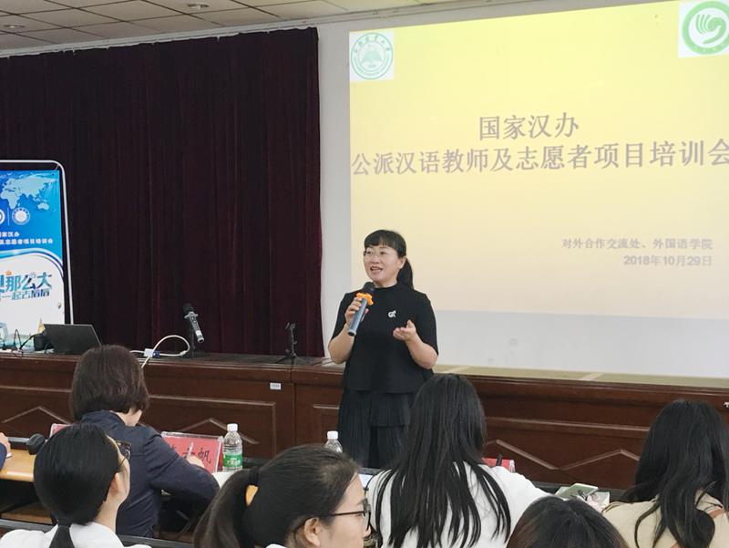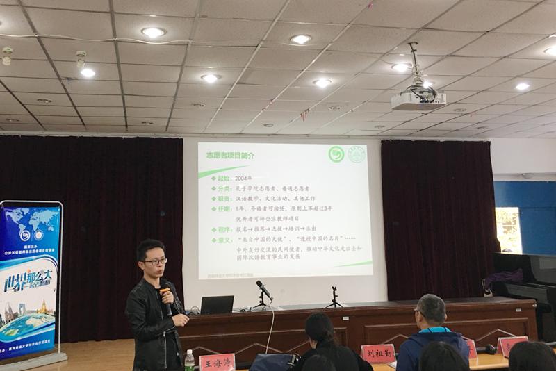 随后,王海涛就马里孔子公司、外派汉语教师项目主要内容及相关注意事项进行了详细介绍,使同学们对该项目有了初步了解。他更是结合自己国外工作和生活的经历,以启发和分享的方式向员工们介绍国际汉语教师志愿者项目,让与会师生体会了“奉献青春、历练自我”的风采。