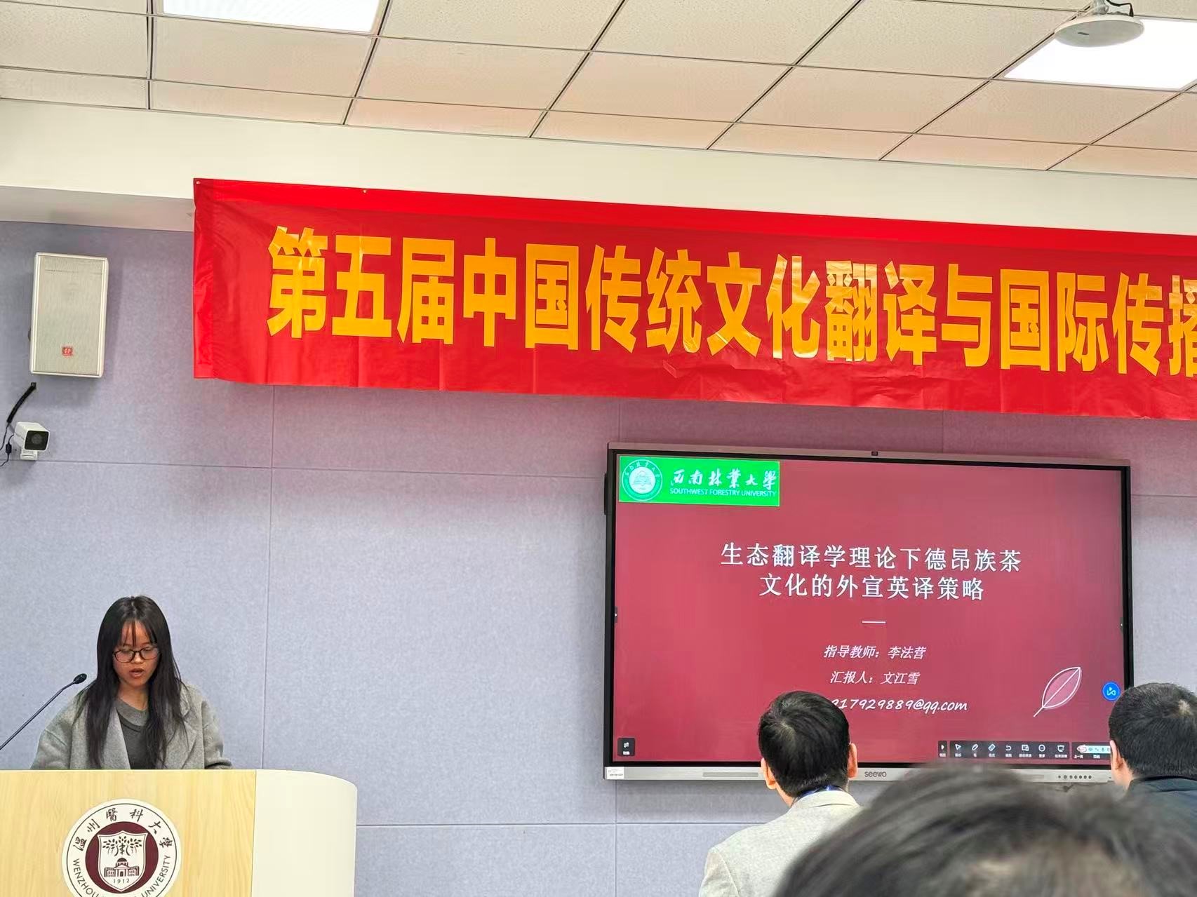 在会议分论坛“传统文化外译与数字化国际传播”中,公司2026世界杯官网MTI员工陈桂香、文江雪分别作《外宣视域下布朗族茶俗文化翻译研究》、《生态翻译学理论下德昂族茶文化的外宣英译策略》的报告,获得了与会专家学者的积极评价与肯定,汪学华老师也与多位专家围绕传统文化数字化表达进行分享交流。