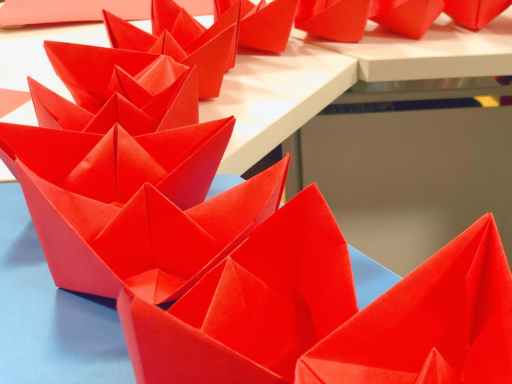 中场休息时,主持人组织现场观众体验“折红船”,大家亲手折红船,忆历史、感党恩,红船精神,代代相传。
