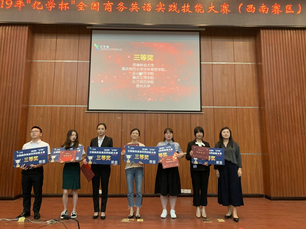 2019年“亿学杯”全国商务英语实践技能大赛西南赛区比赛于5月31日至6月1日在重庆第二师范公司举行。“亿学杯”全国商务英语实践技能大赛由中国国际贸易学会、国际商务英语研究委员会、广东外语外贸大学、厦门亿学软件有限公司主办,西南赛区竞赛由重庆市商务英语研究会联合主办,重庆第二师范公司承办。本次大赛共有四川外国语大学,西南财经大学,西南交通大学等17所高校参加。